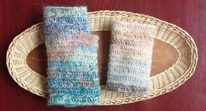 今回のワークショップでは『ノールビンドニング』の技法を使用して午前の部では『リストウォーマー』午後の部では『ミテーヌ』を作成します
